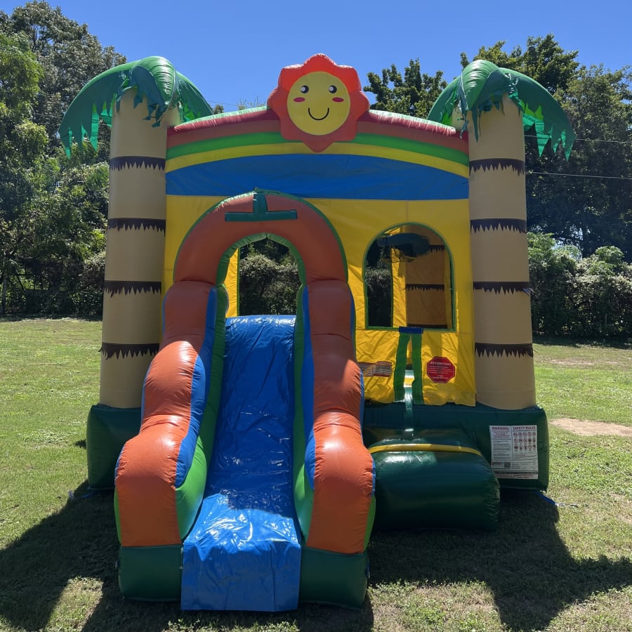 Bring a splash of paradise to your next event with our vibrant Small Tropical Combo Bounce House. Perfectly tailored for young children, this tropical-themed combo bounce house is designed to provide endless fun and excitement for all types of gatherings. Whether it's a birthday party, family reunion, or community festival, this bounce castle will be the centerpiece of attraction.