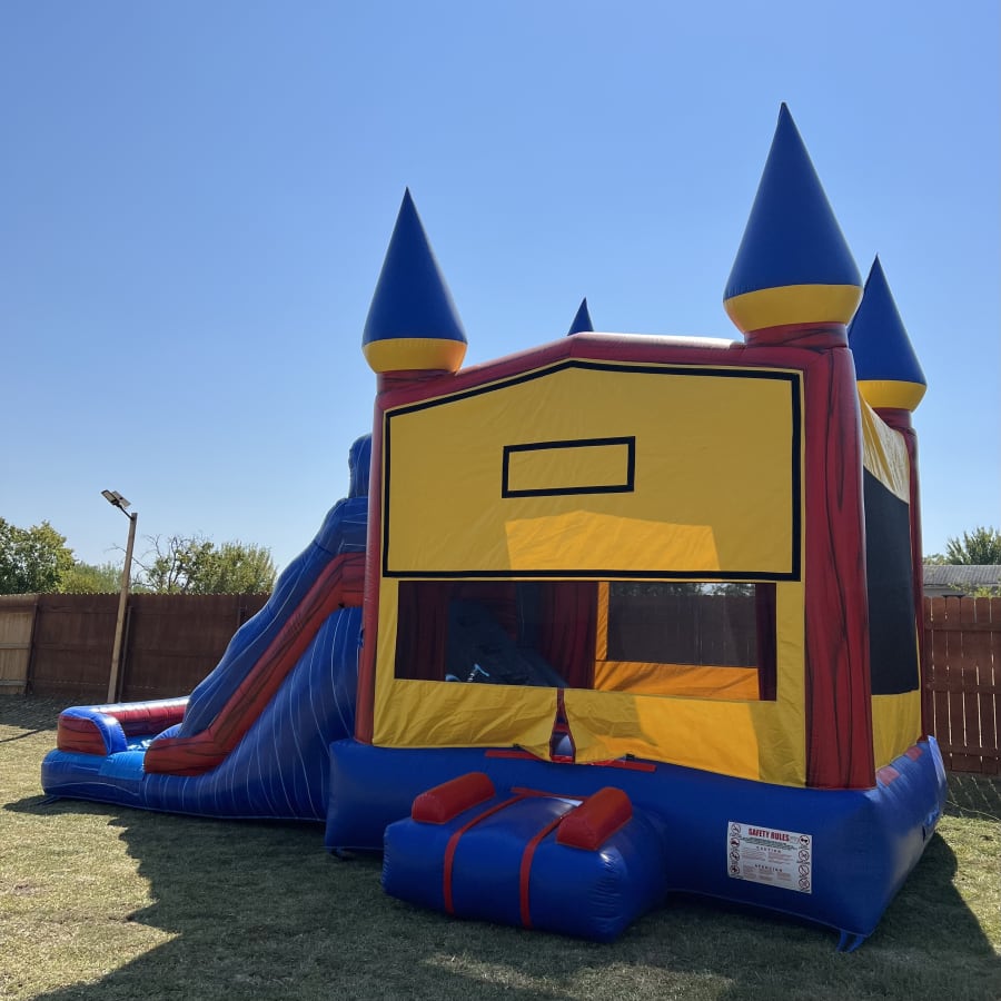 The Red & Yellow Combo Bounce House is a high-energy party attraction designed for backyard parties, school events, and community gatherings. This combo includes a spacious bounce area and an attached water slide for extra excitement. Book your bounce house rental Red & Yellow Combo Bounce House in Kyle, Buda, San Marcos today and give guests an unforgettable, safe, and splash-ready experience.
