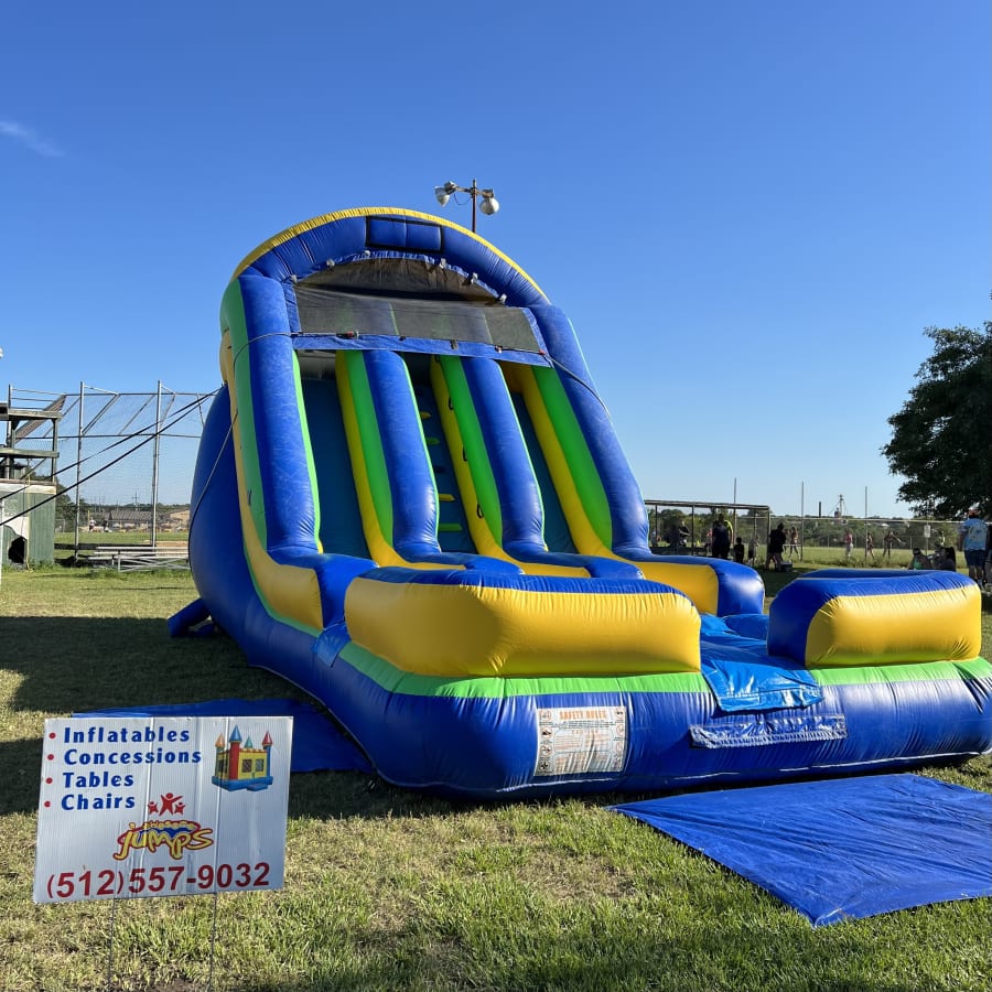 Whether you're hosting a birthday party, a company picnic, or a community gathering, our 18' Dual Lane Water Slide will be the highlight of the event. Watch as kids and adults alike line up eagerly to take turns sliding down the two lanes, enjoying friendly competition and a splashing good time!